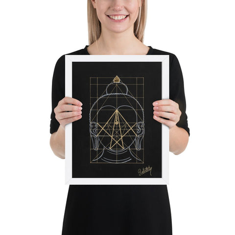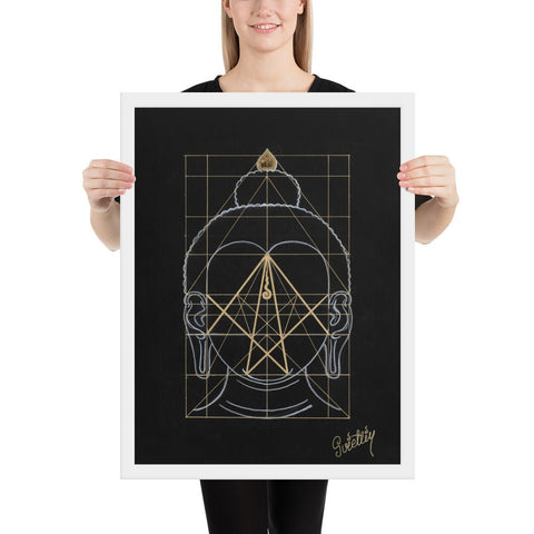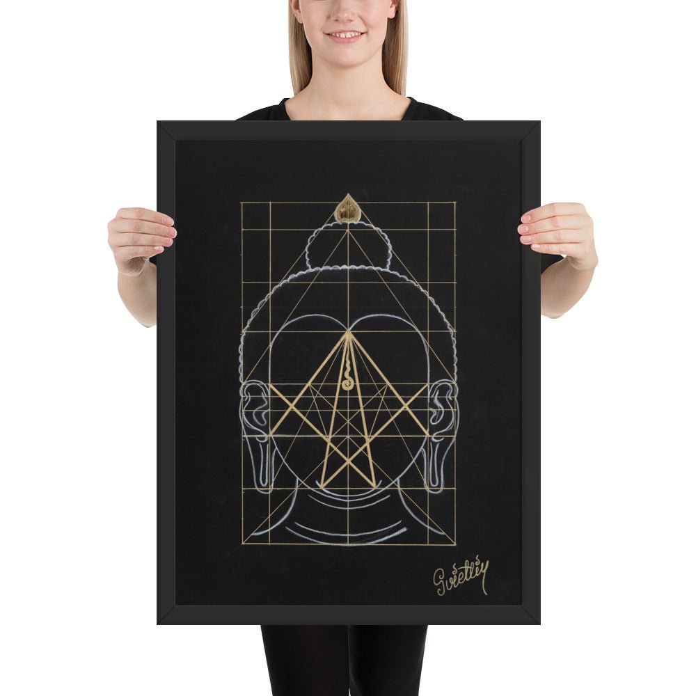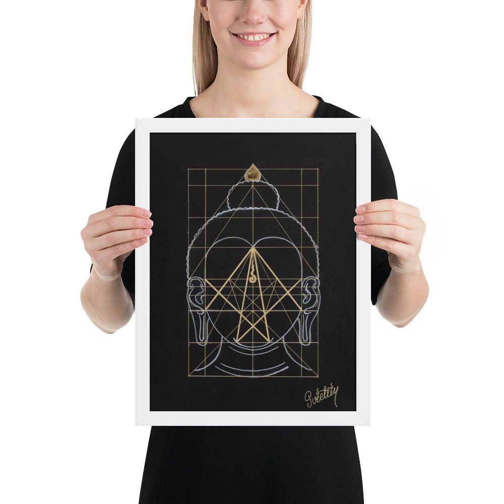 The word “Buddha” means “The One with an Awakened Mind,” derived from the Sanskrit word Buddhi, which translates to “Mind.” The title “Shakyamuni” refers to “The Great Sage of the Sakya Clan,” the lineage from which Buddha originated. In this triptych, Buddha’s head symbolizes the enlightened mind, the calm, wise presence that radiates confidence, awareness, knowledge, and compassion.