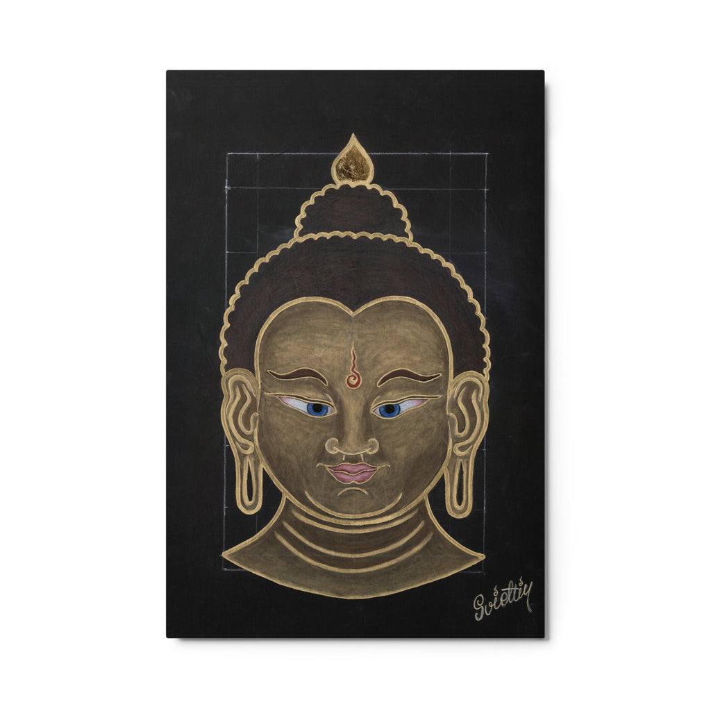 The word “Buddha” means “The One with an Awakened Mind,” derived from the Sanskrit word Buddhi, which translates to “Mind.” The title “Shakyamuni” refers to “The Great Sage of the Sakya Clan,” the lineage from which Buddha originated. In this triptych, Buddha’s head symbolizes the enlightened mind, the calm, wise presence that radiates confidence, awareness, knowledge, and compassion.