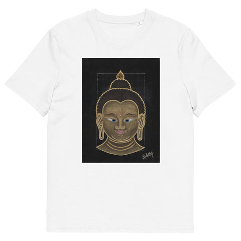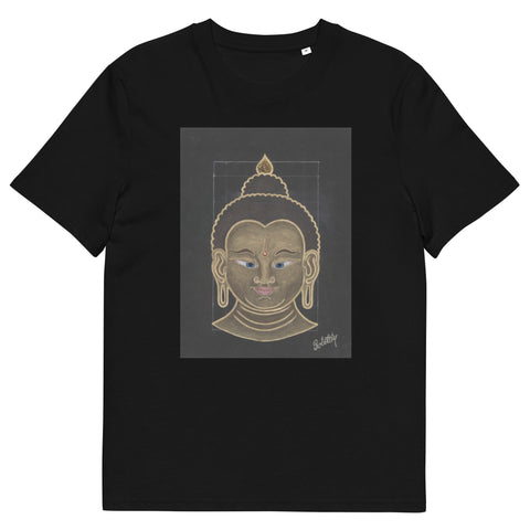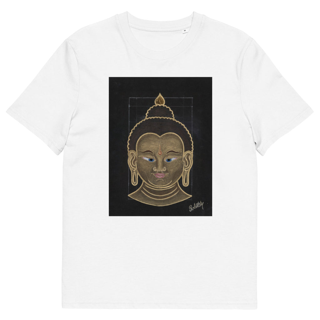 The word “Buddha” means “The One with an Awakened Mind,” derived from the Sanskrit word Buddhi, which translates to “Mind.” The title “Shakyamuni” refers to “The Great Sage of the Sakya Clan,” the lineage from which Buddha originated. In this triptych, Buddha’s head symbolizes the enlightened mind, the calm, wise presence that radiates confidence, awareness, knowledge, and compassion.