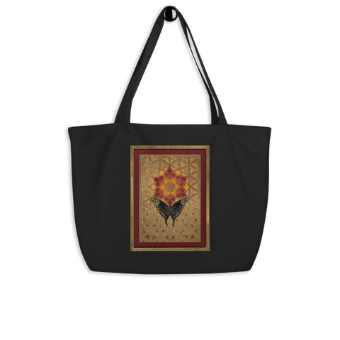 The butterfly's journey towards the sun-lotus signifies the soul's aspiration for higher consciousness and the unfolding of spiritual awareness. The moth's navigation towards the lunar glow stands for our intuitive understanding and the acceptance of the unseen guiding forces in our lives. The mirrored geometrical patterns across both pieces speak of the interconnectedness of all things, the dance of light and shadow that shapes our reality.