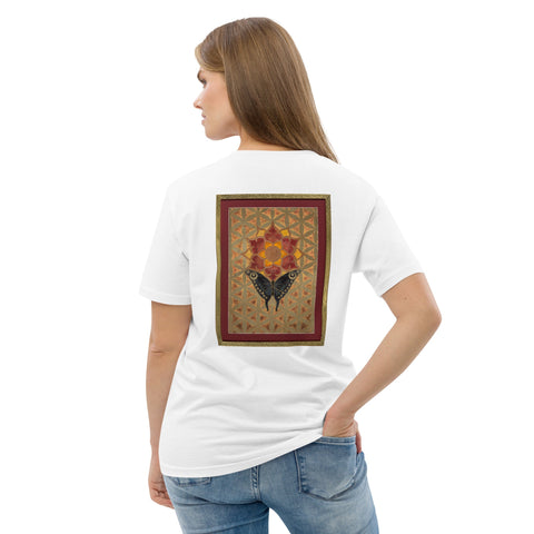 The butterfly's journey towards the sun-lotus signifies the soul's aspiration for higher consciousness and the unfolding of spiritual awareness. The moth's navigation towards the lunar glow stands for our intuitive understanding and the acceptance of the unseen guiding forces in our lives. The mirrored geometrical patterns across both pieces speak of the interconnectedness of all things, the dance of light and shadow that shapes our reality.