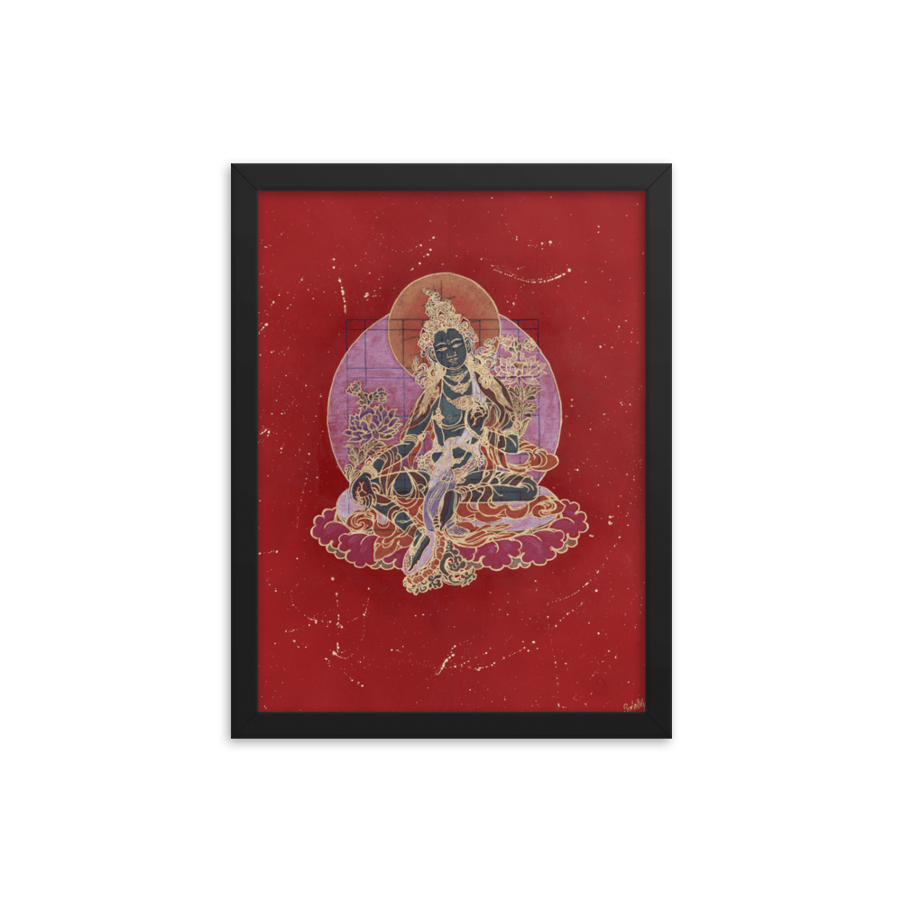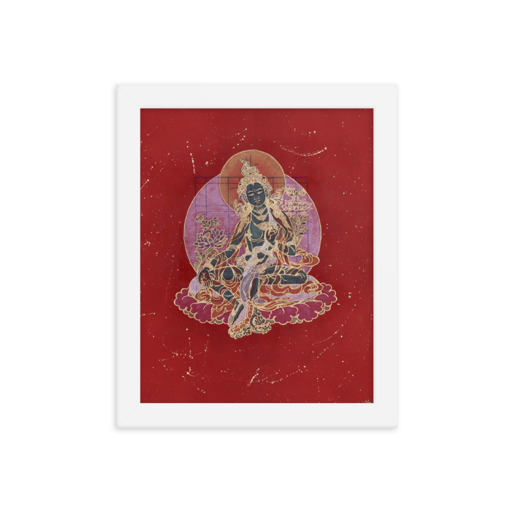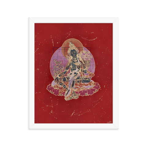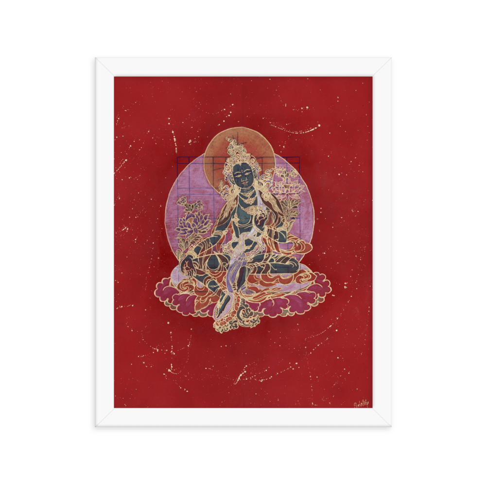 Tara made a sacred vow to incarnate as a woman in every lifetime. She is often referred to as, “the primary Feminist.” Green Tara provides protection from all negative circumstances. She has a very strong healing energy and has the power to release her devotees from unawareness and fearfulness. Green Tara is the most energetic manifestation of all Tara expressions. Her color symbolizes youthful vigor and activity, healing, regeneration, and growth. She also belongs to the same lineage as Dhyani Buddha Amoghasiddhi, Lord of karma (action). Thus Green Tara is a goddess of Karma (action), as well.