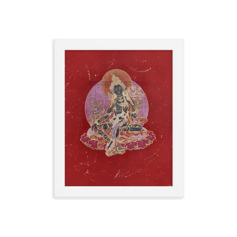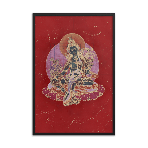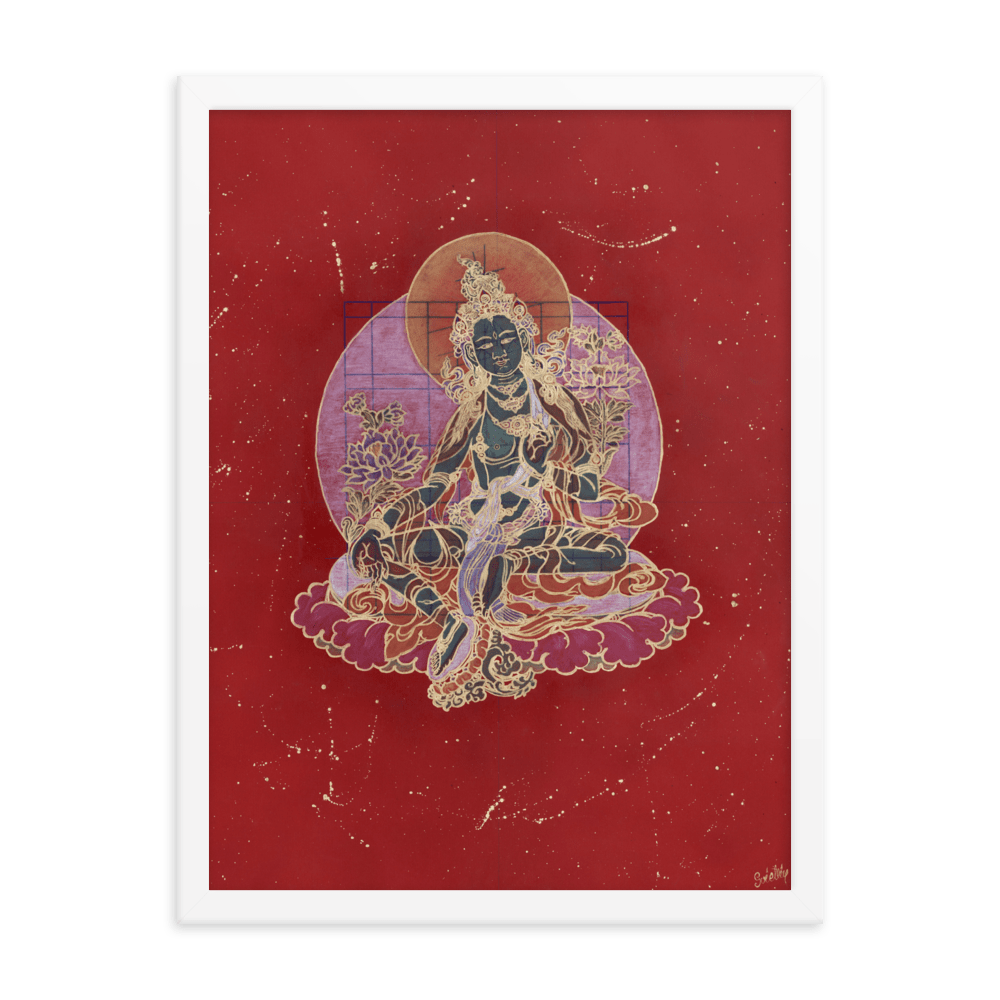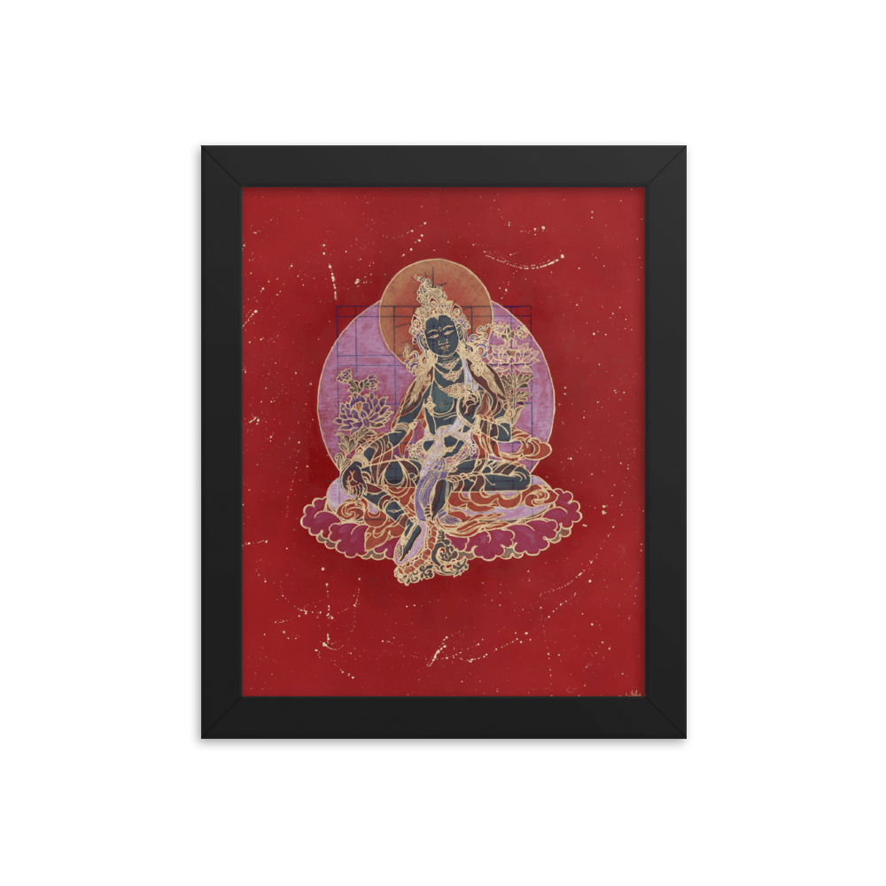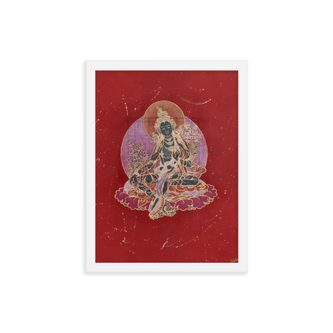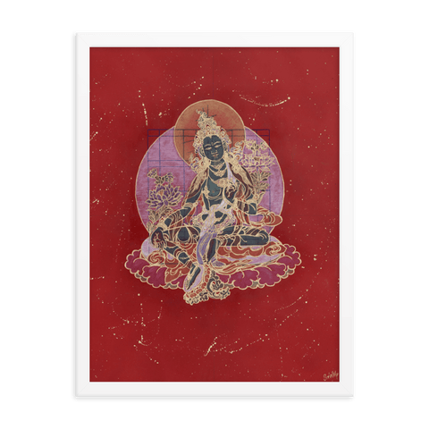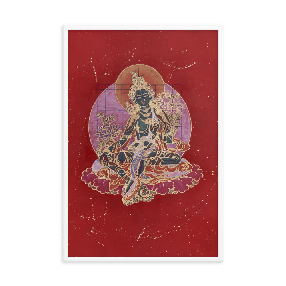 Tara made a sacred vow to incarnate as a woman in every lifetime. She is often referred to as, “the primary Feminist.” Green Tara provides protection from all negative circumstances. She has a very strong healing energy and has the power to release her devotees from unawareness and fearfulness. Green Tara is the most energetic manifestation of all Tara expressions. Her color symbolizes youthful vigor and activity, healing, regeneration, and growth. She also belongs to the same lineage as Dhyani Buddha Amoghasiddhi, Lord of karma (action). Thus Green Tara is a goddess of Karma (action), as well.