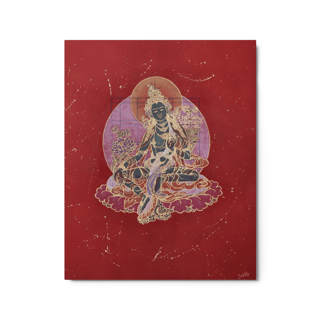 Tara made a sacred vow to incarnate as a woman in every lifetime. She is often referred to as, “the primary Feminist.” Green Tara provides protection from all negative circumstances. She has a very strong healing energy and has the power to release her devotees from unawareness and fearfulness. Green Tara is the most energetic manifestation of all Tara expressions. Her color symbolizes youthful vigor and activity, healing, regeneration, and growth. She also belongs to the same lineage as Dhyani Buddha Amoghasiddhi, Lord of karma (action). Thus Green Tara is a goddess of Karma (action), as well.