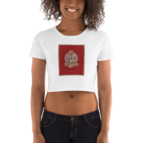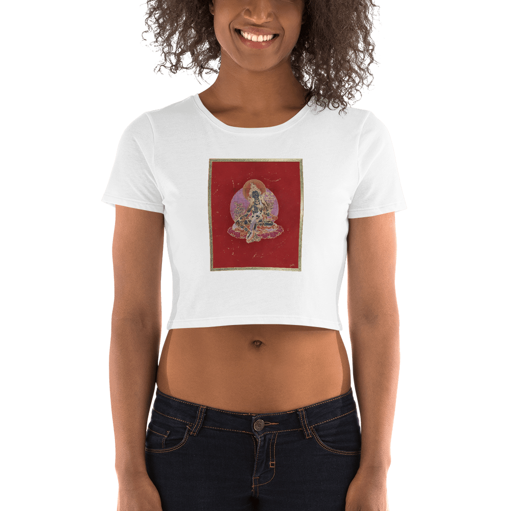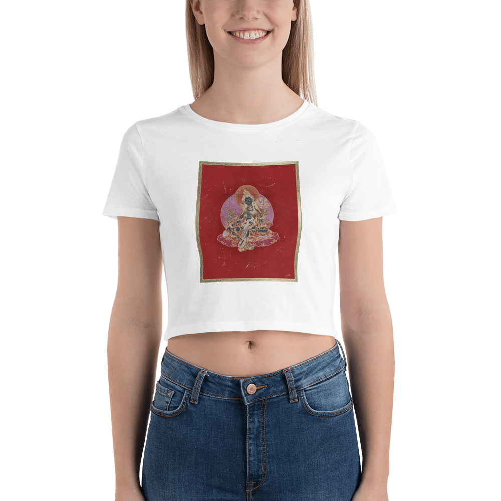 Tara made a sacred vow to incarnate as a woman in every lifetime. She is often referred to as, “the primary Feminist.” Green Tara provides protection from all negative circumstances. She has a very strong healing energy and has the power to release her devotees from unawareness and fearfulness. Green Tara is the most energetic manifestation of all Tara expressions. Her color symbolizes youthful vigor and activity, healing, regeneration, and growth. She also belongs to the same lineage as Dhyani Buddha Amoghasiddhi, Lord of karma (action). Thus Green Tara is a goddess of Karma (action), as well.