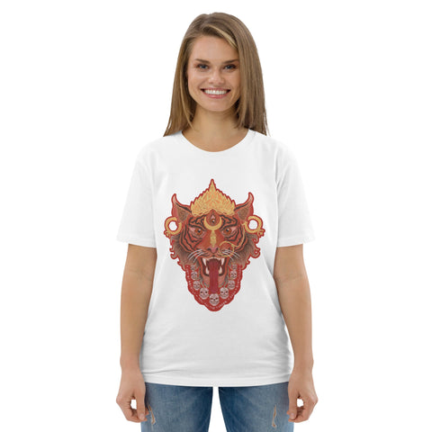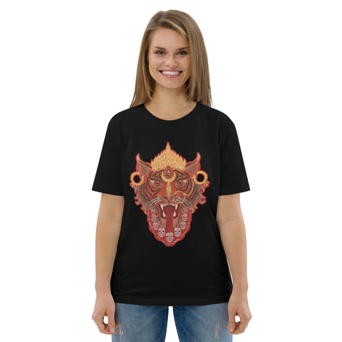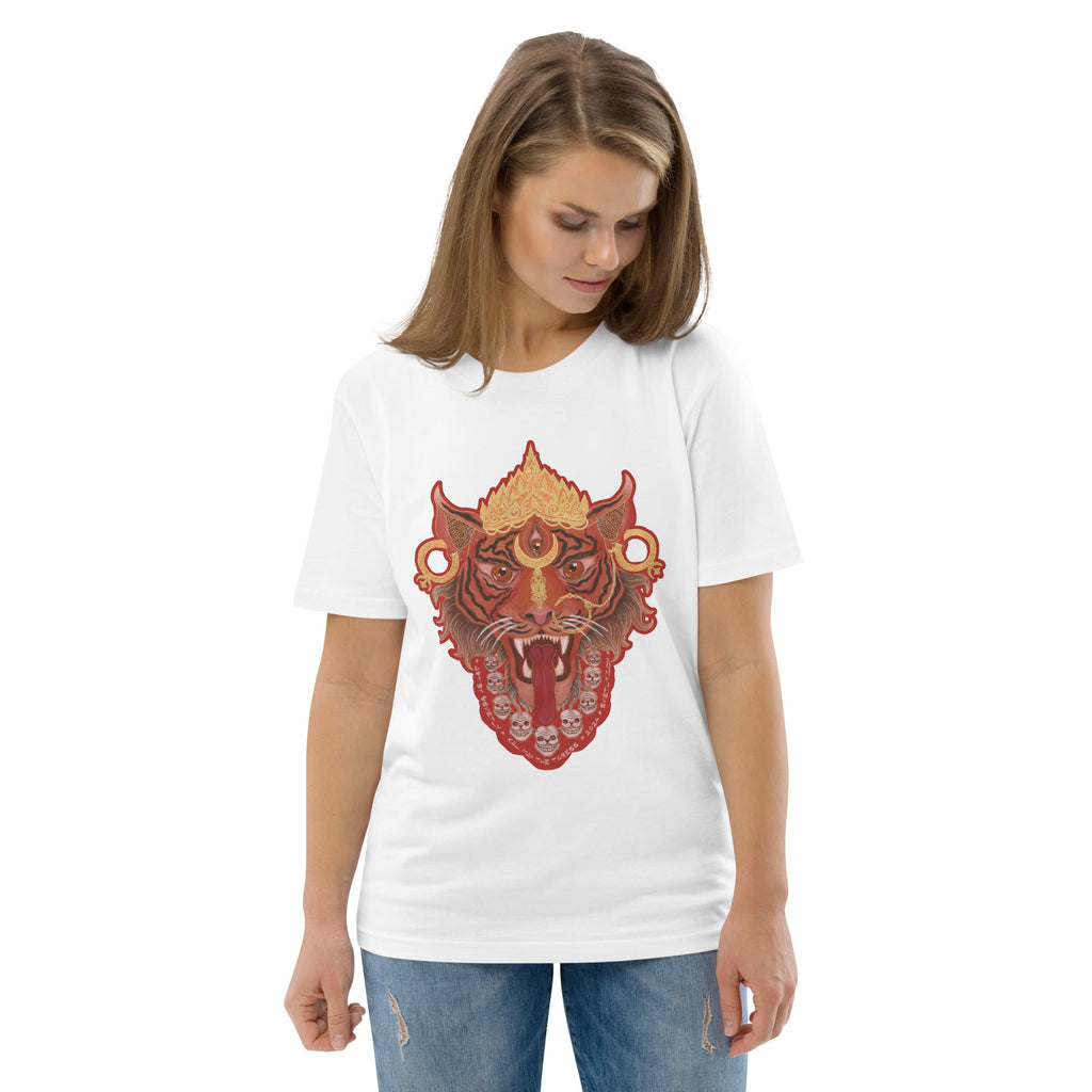The tiger’s extended tongue symbolizes defiance against negativity, transforming obstacles into strength. Every intricate detail, from Kali’s primal power to the harmonious balance of the artwork, speaks to the depth of her transformative nature.