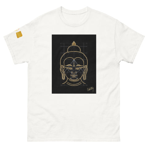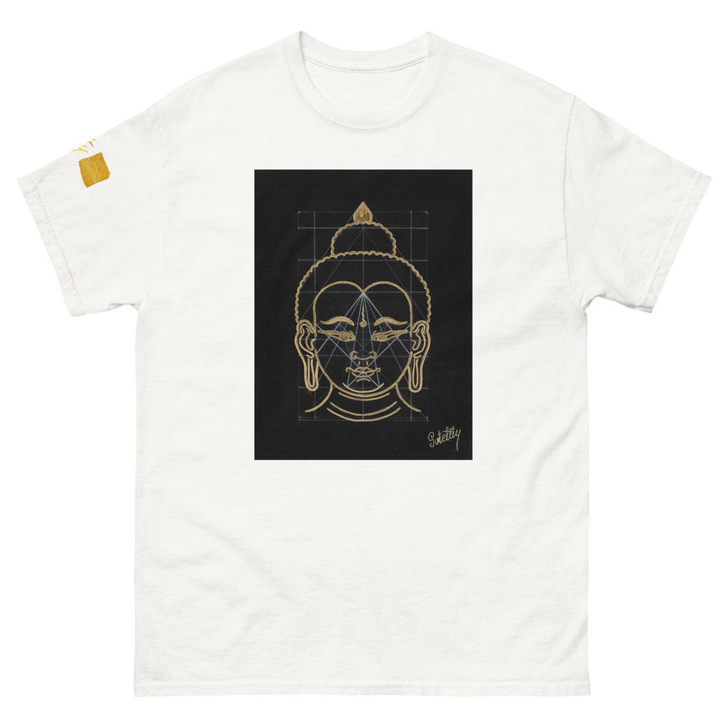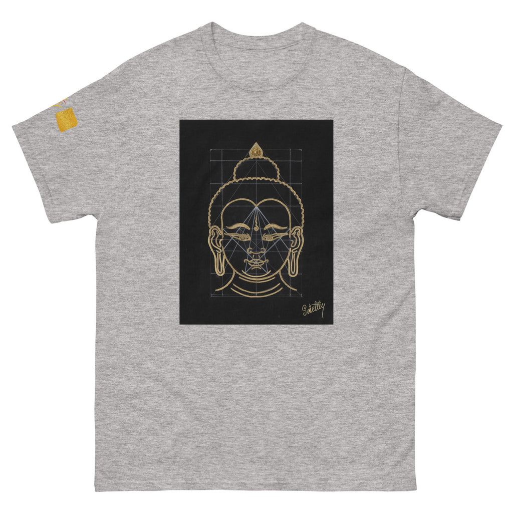 The word “Buddha” means “The One with an Awakened Mind,” derived from the Sanskrit word Buddhi, which translates to “Mind.” The title “Shakyamuni” refers to “The Great Sage of the Sakya Clan,” the lineage from which Buddha originated. In this triptych, Buddha’s head symbolizes the enlightened mind, the calm, wise presence that radiates confidence, awareness, knowledge, and compassion.