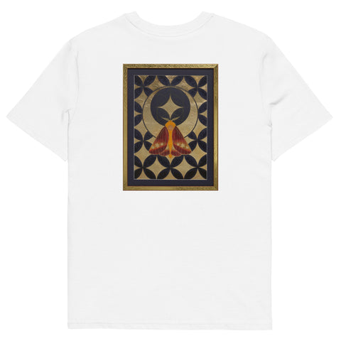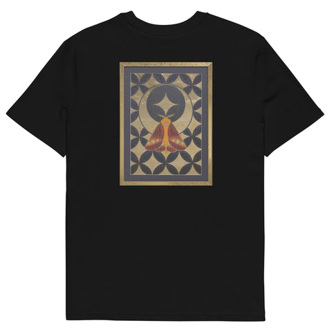 The butterfly's journey towards the sun-lotus signifies the soul's aspiration for higher consciousness and the unfolding of spiritual awareness. The moth's navigation towards the lunar glow stands for our intuitive understanding and the acceptance of the unseen guiding forces in our lives. The mirrored geometrical patterns across both pieces speak of the interconnectedness of all things, the dance of light and shadow that shapes our reality.
