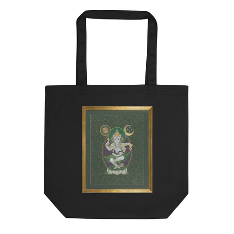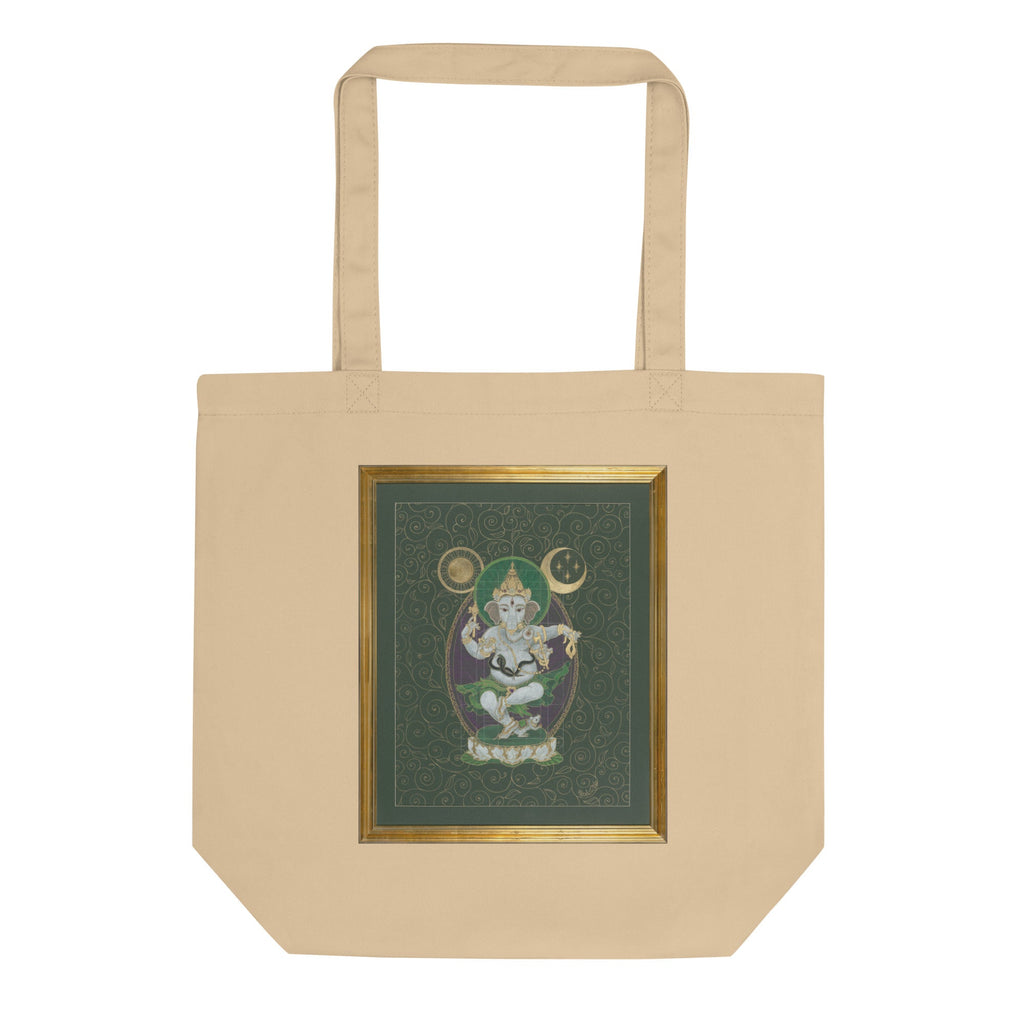 Lord Ganesha is representative of consciousness. Ganesha is in full control of the little mouse, his ego. Both are very happy and living full, happy lives dancing under the Wish Fulfilling tree.