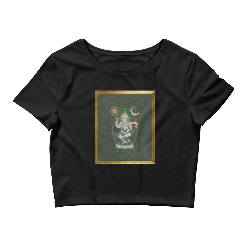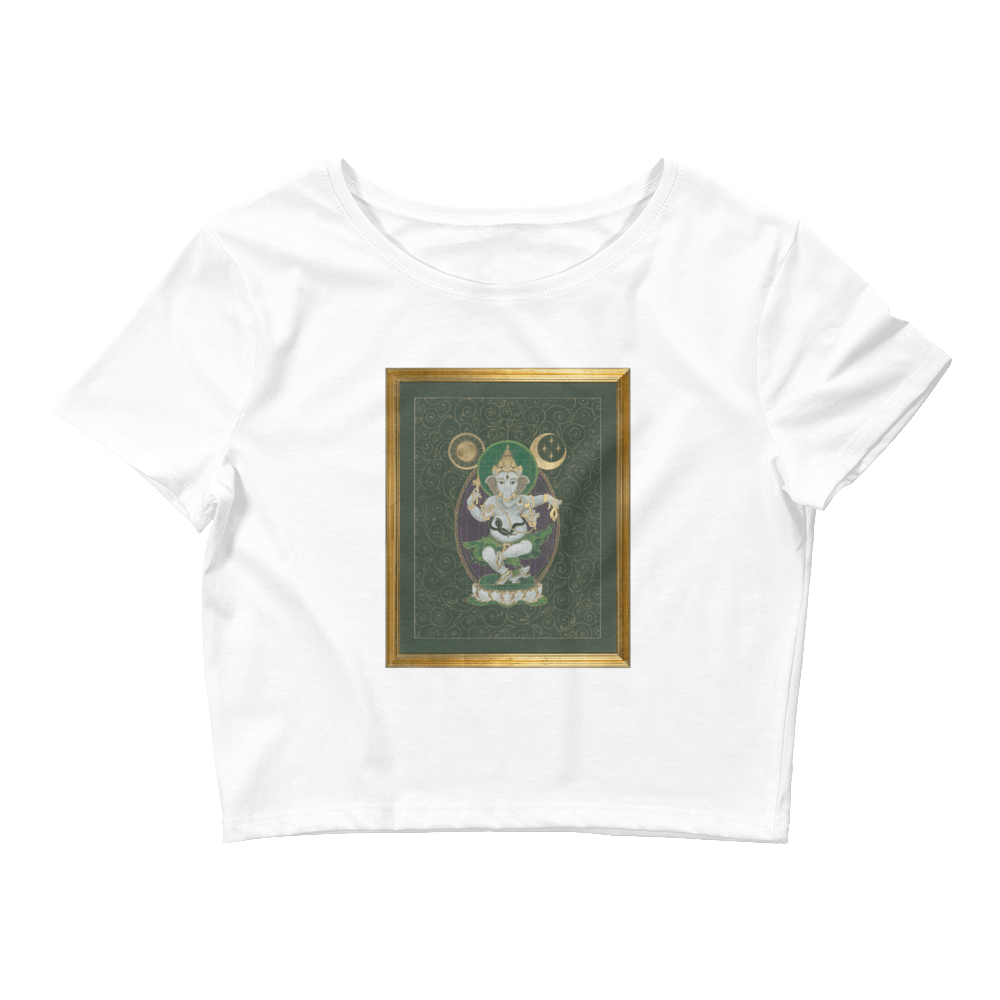 Lord Ganesha is representative of consciousness. Ganesha is in full control of the little mouse, his ego. Both are very happy and living full, happy lives dancing under the Wish Fulfilling tree.