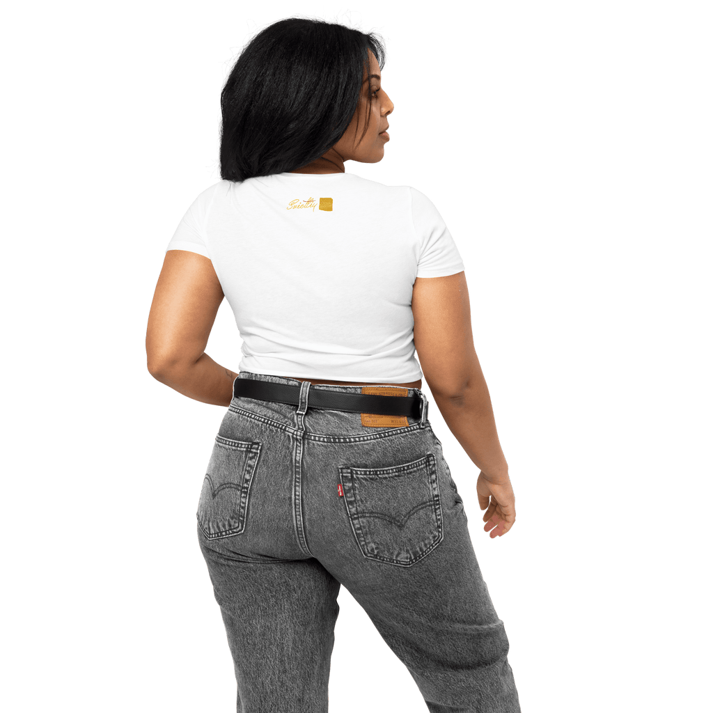 The season's trendiest garment - the crop top. This top is tight-fitting but still incredibly comfortable, and it hits just above the navel.