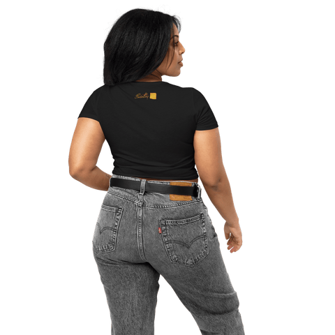 The season's trendiest garment - the crop top. This top is tight-fitting but still incredibly comfortable, and it hits just above the navel.