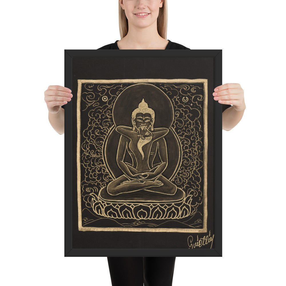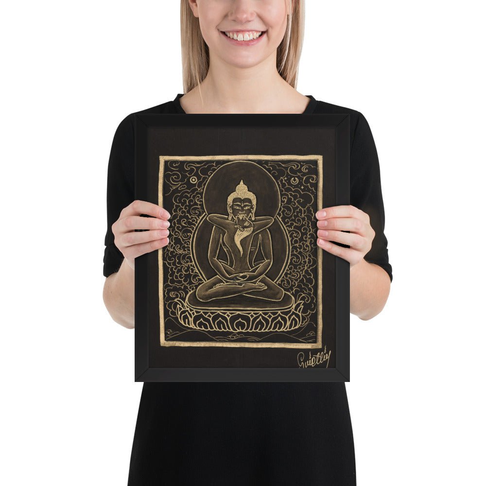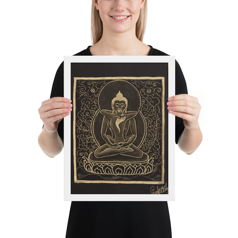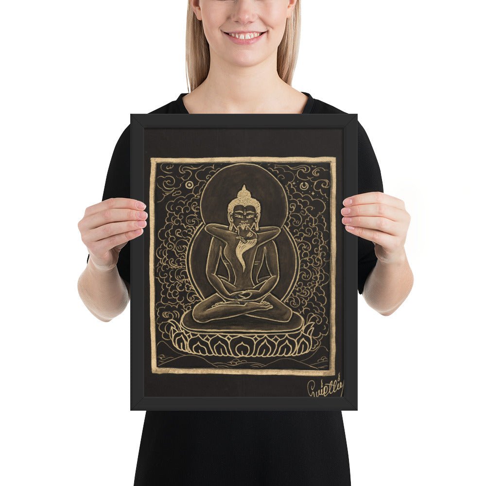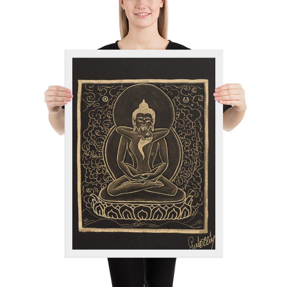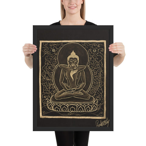 Yab-yum in Tibetan is translated literally as, "father-mother." It is a common symbol throughout Buddhist traditions. Yab-Yum represents the masculine and feminine union of wisdom and compassion, as depicted by a male and female deity. The male figure represents compassion and skill, while the female partner represents wisdom and insight. Both are necessary for enlightenment. In the Yab-Yum posture, the female is seated on the male’s lap. There is a rare presentation of a similar figure but reversed, with the male sitting on the female’s lap, called Yum-Yab.