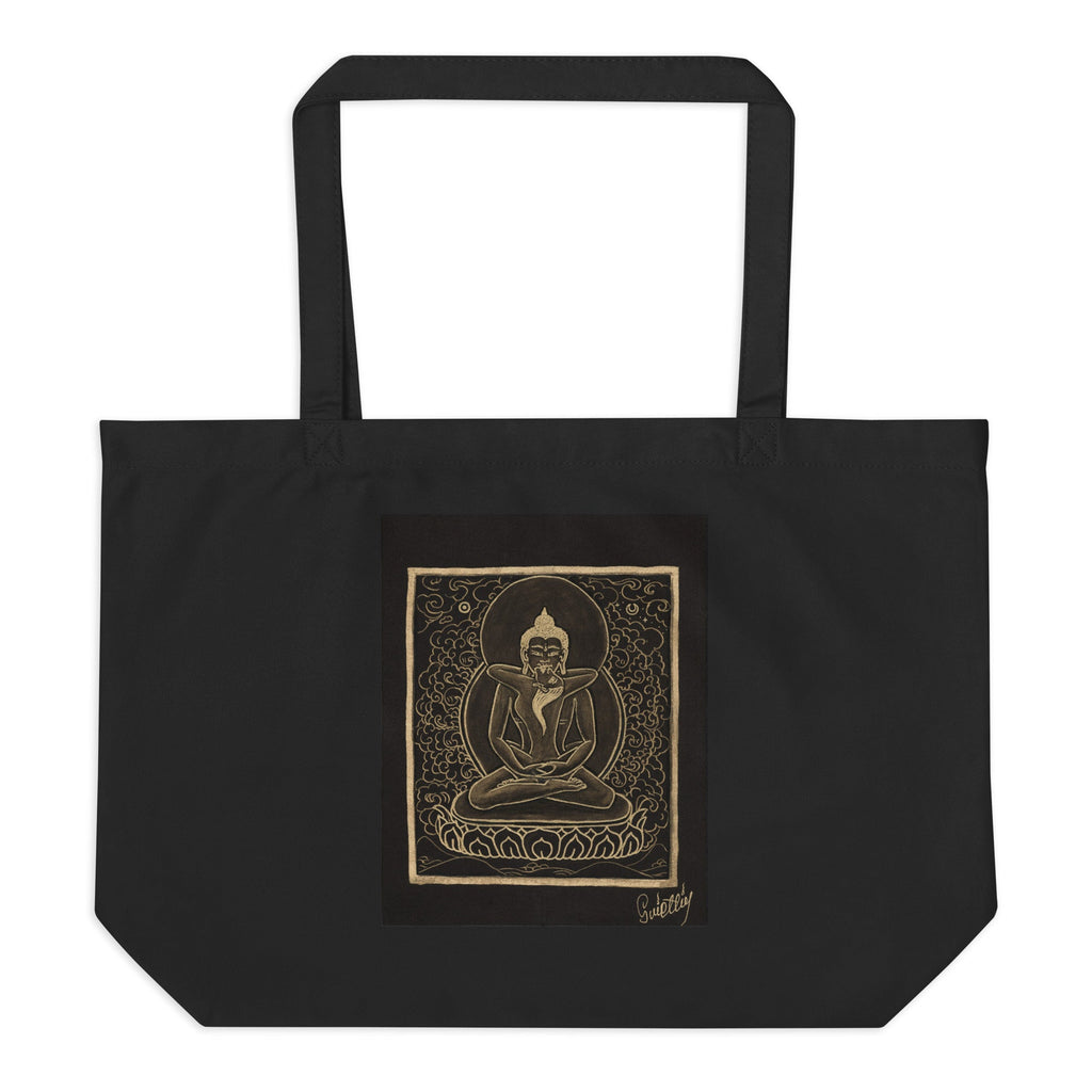 Yab-yum in Tibetan is translated literally as, "father-mother." It is a common symbol throughout Buddhist traditions. Yab-Yum represents the masculine and feminine union of wisdom and compassion, as depicted by a male and female deity. The male figure represents compassion and skill, while the female partner represents wisdom and insight. Both are necessary for enlightenment. In the Yab-Yum posture, the female is seated on the male’s lap. There is a rare presentation of a similar figure but reversed, with the male sitting on the female’s lap, called Yum-Yab.