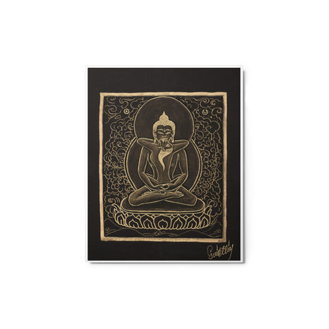 Yab-yum in Tibetan is translated literally as, "father-mother." It is a common symbol throughout Buddhist traditions. Yab-Yum represents the masculine and feminine union of wisdom and compassion, as depicted by a male and female deity. The male figure represents compassion and skill, while the female partner represents wisdom and insight. Both are necessary for enlightenment. In the Yab-Yum posture, the female is seated on the male’s lap. There is a rare presentation of a similar figure but reversed, with the male sitting on the female’s lap, called Yum-Yab.
