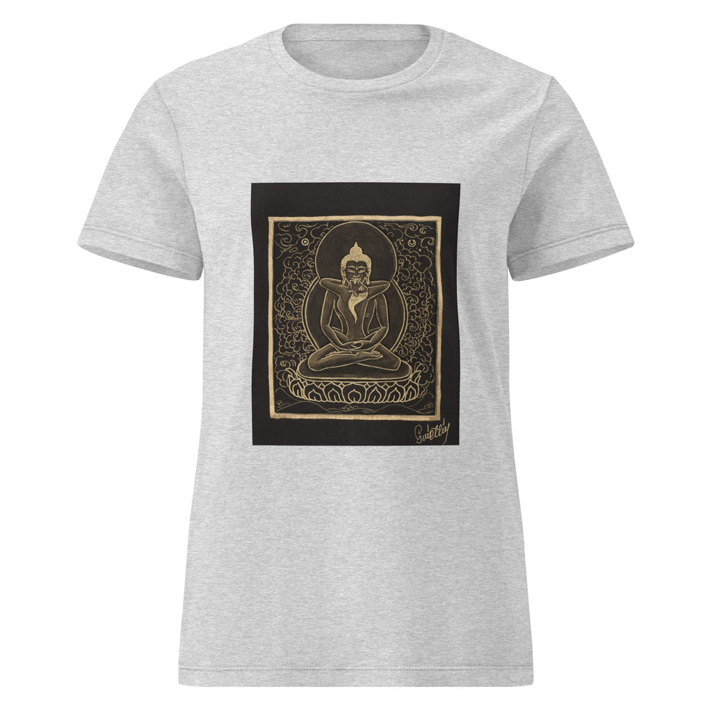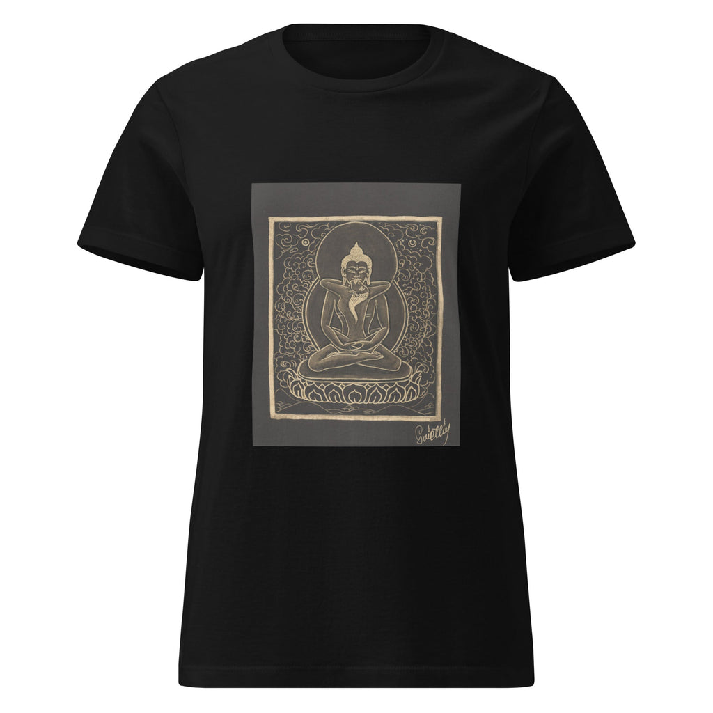 Yab-yum in Tibetan is translated literally as, "father-mother." It is a common symbol throughout Buddhist traditions. Yab-Yum represents the masculine and feminine union of wisdom and compassion, as depicted by a male and female deity. The male figure represents compassion and skill, while the female partner represents wisdom and insight. Both are necessary for enlightenment. In the Yab-Yum posture, the female is seated on the male’s lap. There is a rare presentation of a similar figure but reversed, with the male sitting on the female’s lap, called Yum-Yab.